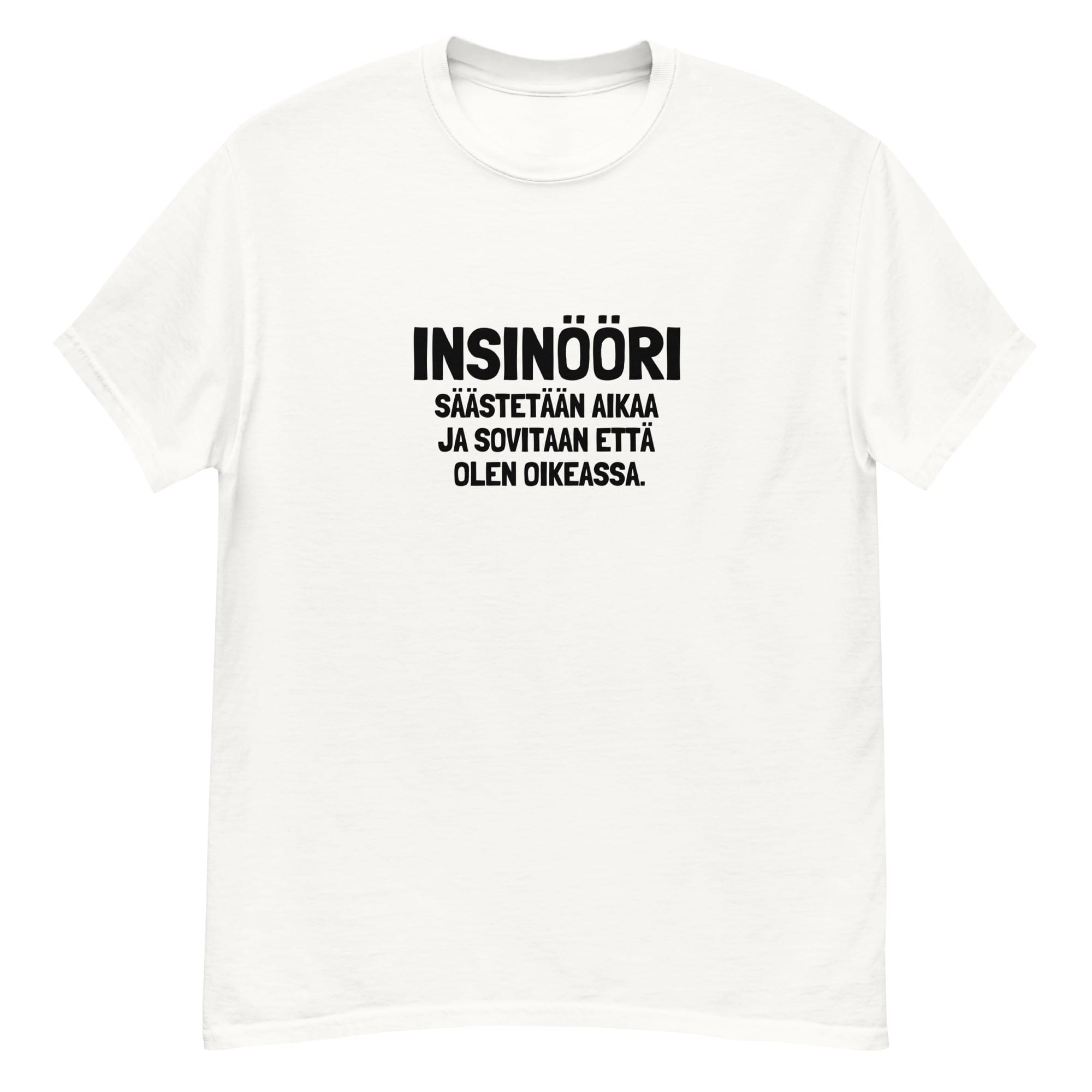 ”Insinööri – Säästetään aikaa ja sovitaan että olen oikeassa” -t-paita on täydellinen valinta jokaiselle insinöörille tai sellaiseksi itsensä tuntevalle, joka tietää tarkalleen, miten asiat hoidetaan – ja vieläpä oikein! Tämä hauska t-paita on täynnä insinöörimäistä itsevarmuutta ja ripaus leikkisää asennetta, joka kertoo, että turha väitellä, kun totuus on jo selvillä. Olipa kyseessä sitten tekninen ongelma, suunnitteluratkaisu tai arkipäivän ongelmien analysointi, tämän paidan kantaja tietää tarkalleen, mitä tehdä – tai ainakin vakuuttaa muut siitä.