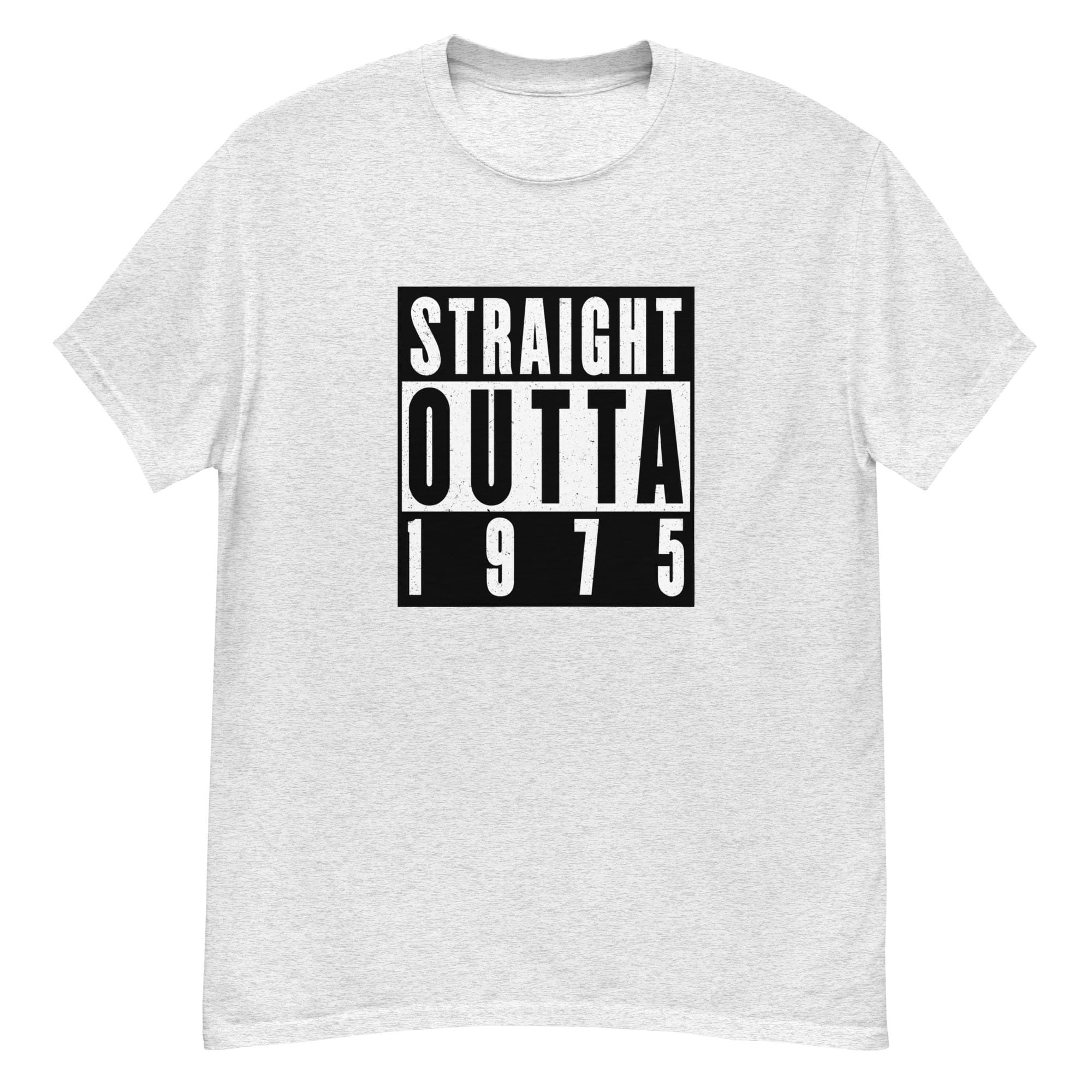 ”Straight outta 1975” on t-paita niille, jotka tulivat maailmaan legendaarisena vuonna – ja ovat siitä asti olleet täyttä asiaa 😎🎞️. Tämä retro, itsevarma ja pilke silmäkulmassa -teksti tekee selväksi, että vuosimalli ’75 ei ole vanha – se on alkuperäinen.