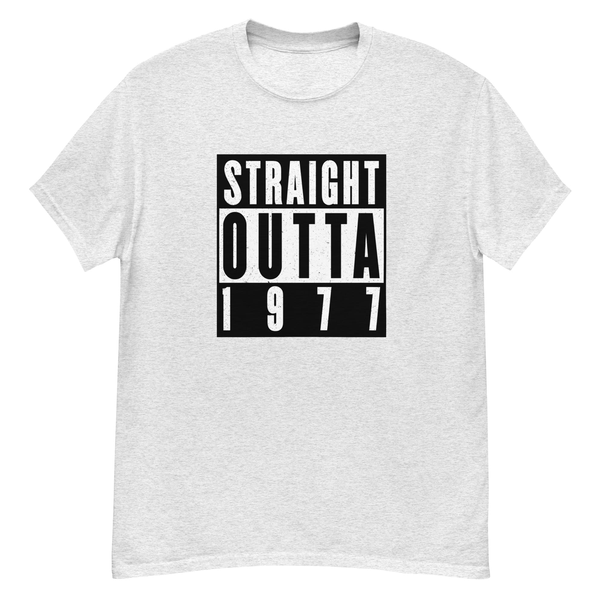 ”Straight outta 1977” on t-paita niille, joiden tarina alkoi samana vuonna kun Star Wars sai ensi-iltansa ja punk räjähti ilmoille 🤘🌌. Tämä retro, itsevarma ja hyväntuulinen teksti kertoo, että vuosimalli ’77 ei ole pelkkä luku – se on elämänasenne.